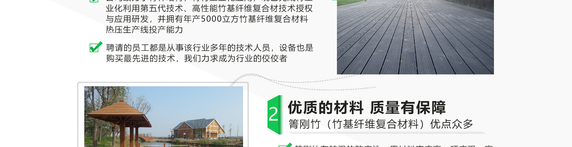 宣城宏宇竹業(yè)有限公司位于“華夏毛竹首鎮(zhèn)”的安徽省宣城市涇縣蔡村鎮(zhèn),公司致力于竹材工業(yè)化應(yīng)用與研發(fā),已完成竹工業(yè)化利用第五代技術(shù)-竹基纖維復(fù)合材技術(shù)應(yīng)用研發(fā),并獲得2015年度國(guó)家科技進(jìn)步獎(jiǎng)二等獎(jiǎng)。公司擁有行業(yè)幅面3850*1320mm的5400噸壓力的20層熱壓機(jī),可以直接壓制3850*1180*52的坯板,具備年產(chǎn)10000立方米的生產(chǎn)能力。宏宇竹業(yè)以“領(lǐng)導(dǎo)竹材恒久價(jià)值”為己任,以匠心的工藝,銳意進(jìn)取的管理團(tuán)隊(duì)打造一個(gè)產(chǎn)品多樣化、市場(chǎng)多元化的科技型企業(yè)。公司從成立之初一直重視品牌建設(shè),公司注冊(cè)商標(biāo)“箐剛“竹,致力打造戶外竹材優(yōu)異品牌,讓宏宇竹業(yè)深入每一個(gè)消費(fèi)者的心。